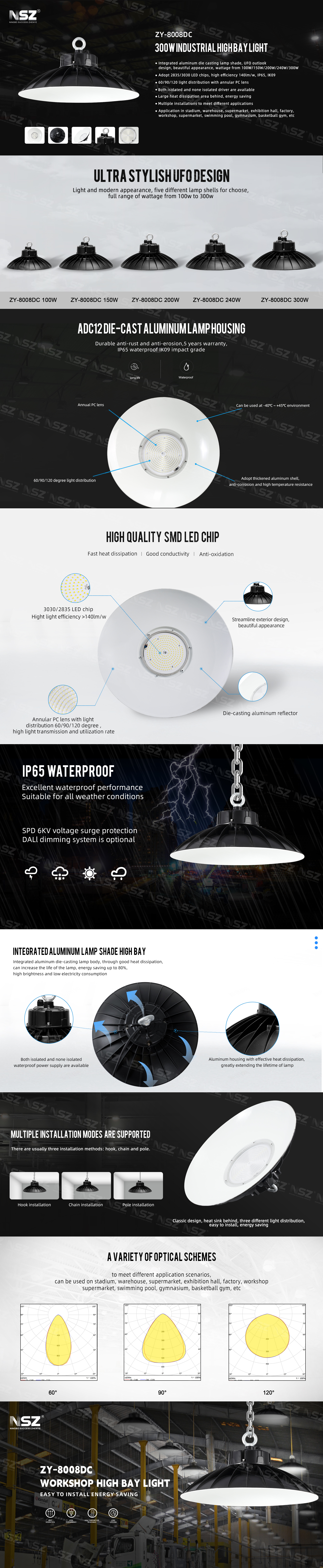 8008dcLED visoke uvale revolucionirale su industrijsku rasvjetu nudeći energetski učinkovito, dugotrajno i svijetlo osvjetljenje za skladišta, proizvodne sadržaje, gimnazije i druge prostore s povišenim stropovima, ugostivši jedinstvene potrebe rasvjete ovih okruženja. 8008DC kao NLO svjetlo za hitne slučajeve, sa svojim trendovskim oblikom NLO -a i dobrom konfiguracijom, postao je najbolja svjetla High Bay Shop i Best Warehouse High Bay Lights na tržištu kao 300 vata LED High Bay svjetla.