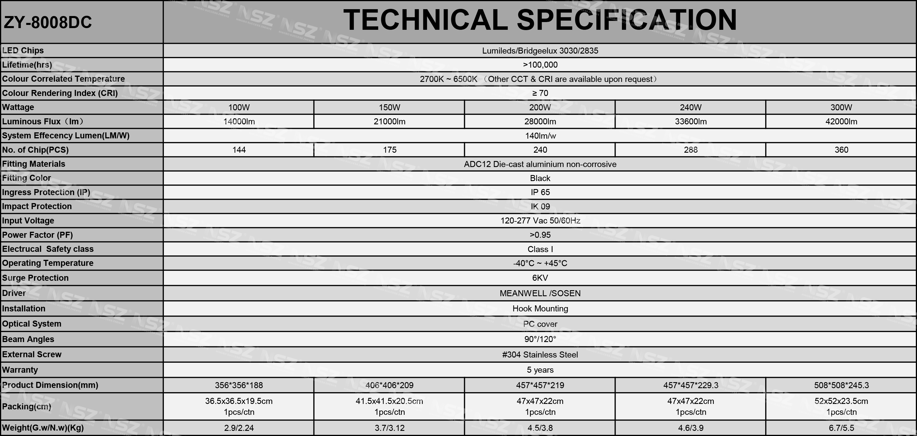 Naši 300 W LED High Bay Lights 8008dc